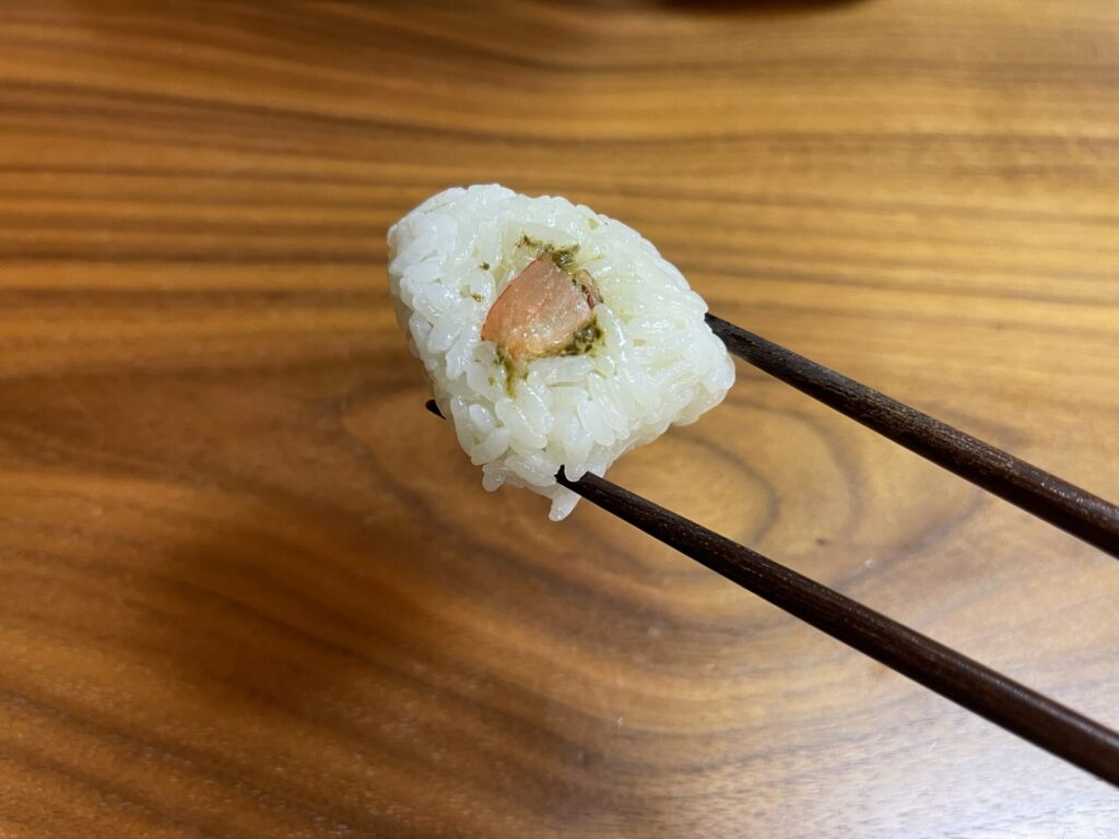 おにぎりの中にもしっかりエビが入っていて、バジルの香りがふわっと鼻に抜けていきます。